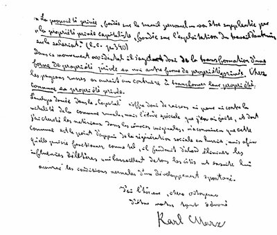 Or, ce n’est que douze ans plus tard que l’énigme fut résolue, la lettre de Marx ayant été retrouvée dans les archives de P. Axelrod, à Berlin (6) .